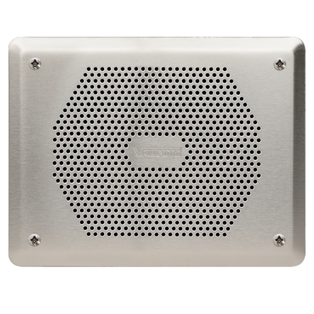 The V-9806 Stainless Steel Faceplate provides protection for Valcom FlexHorns™ (V-1080/V-1090) in areas that are vulnerable to vandalism or damage.