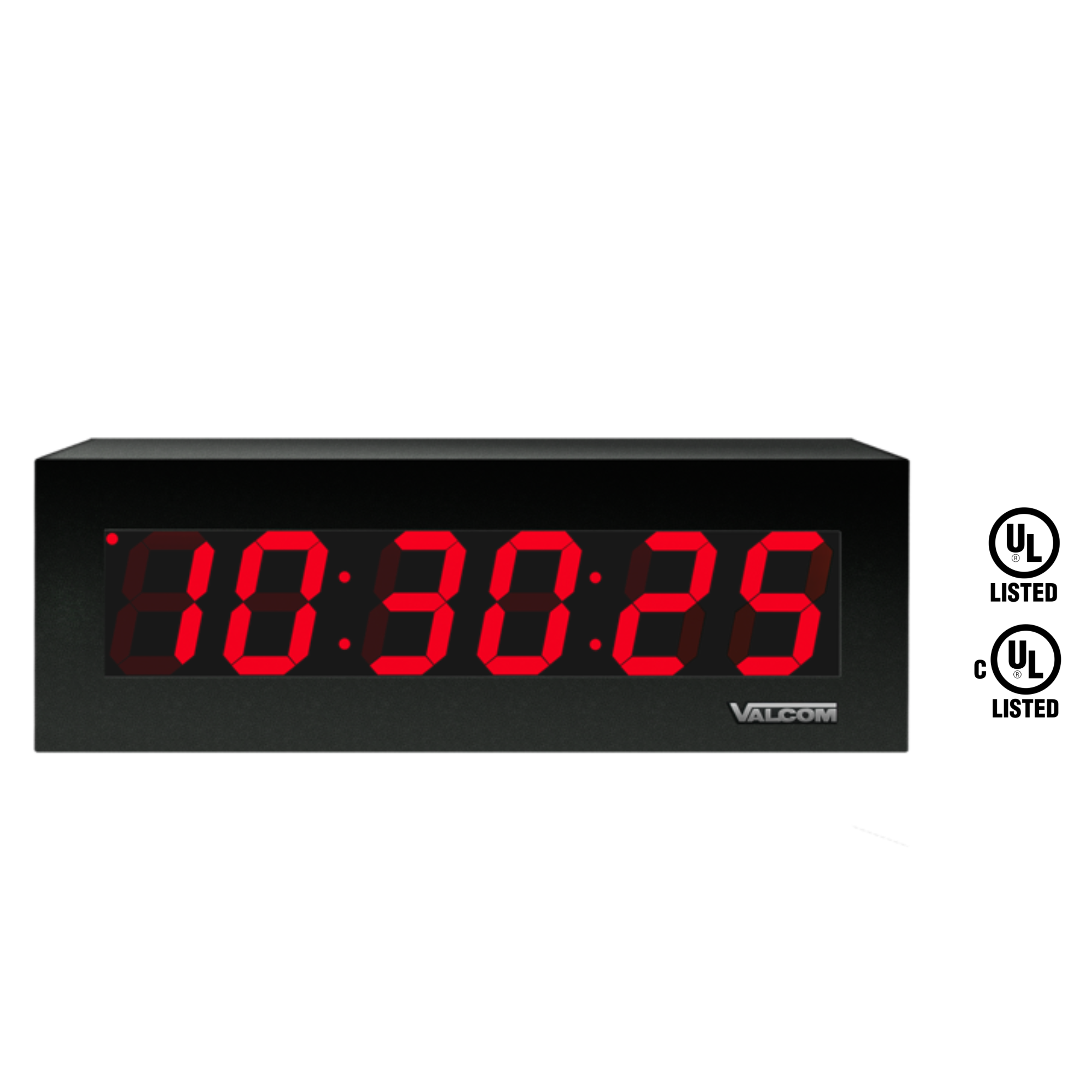 Valcom's IP PoE Digital Clock, 4.0-Inch, 6-Digits enables time indication, synchronization, and correction over a simple network connection. This allows locating a clock display anywhere on the network. Program Clock synchronization to any NTP (Network Time Protocol) server.
