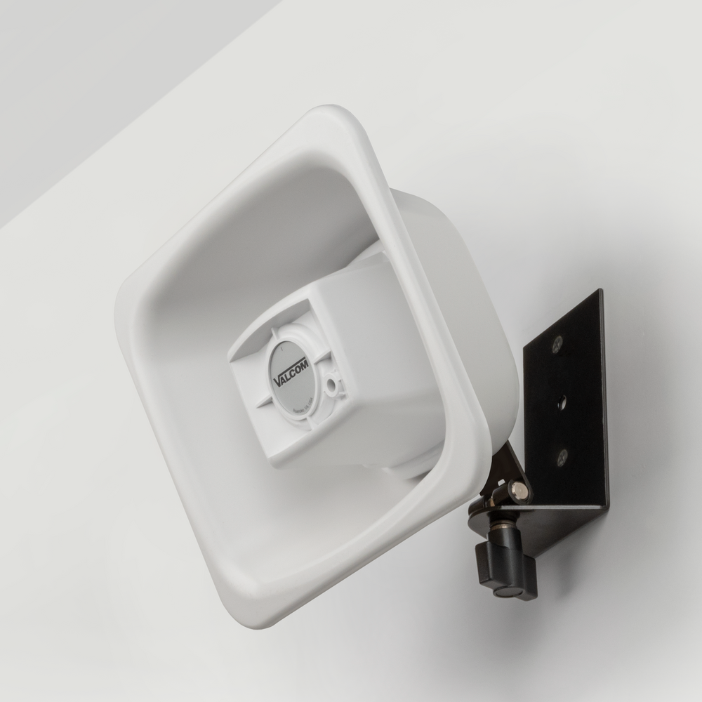 Valcom's VIP-480AL-W IP One-Way FlexHorn™ with Long Line Extender, is a compact horn designed for areas with low ceilings, and low-to-moderate noise environments. The VIP-480AL-W is water-proof, which provides protection for settings such as car washes, operating rooms and food processing plants. It is also an ideal solution for gymnasiums, prisons, subway and train stations, and parking garages. It gives you the flexibility to be mounted in a variety of ways.