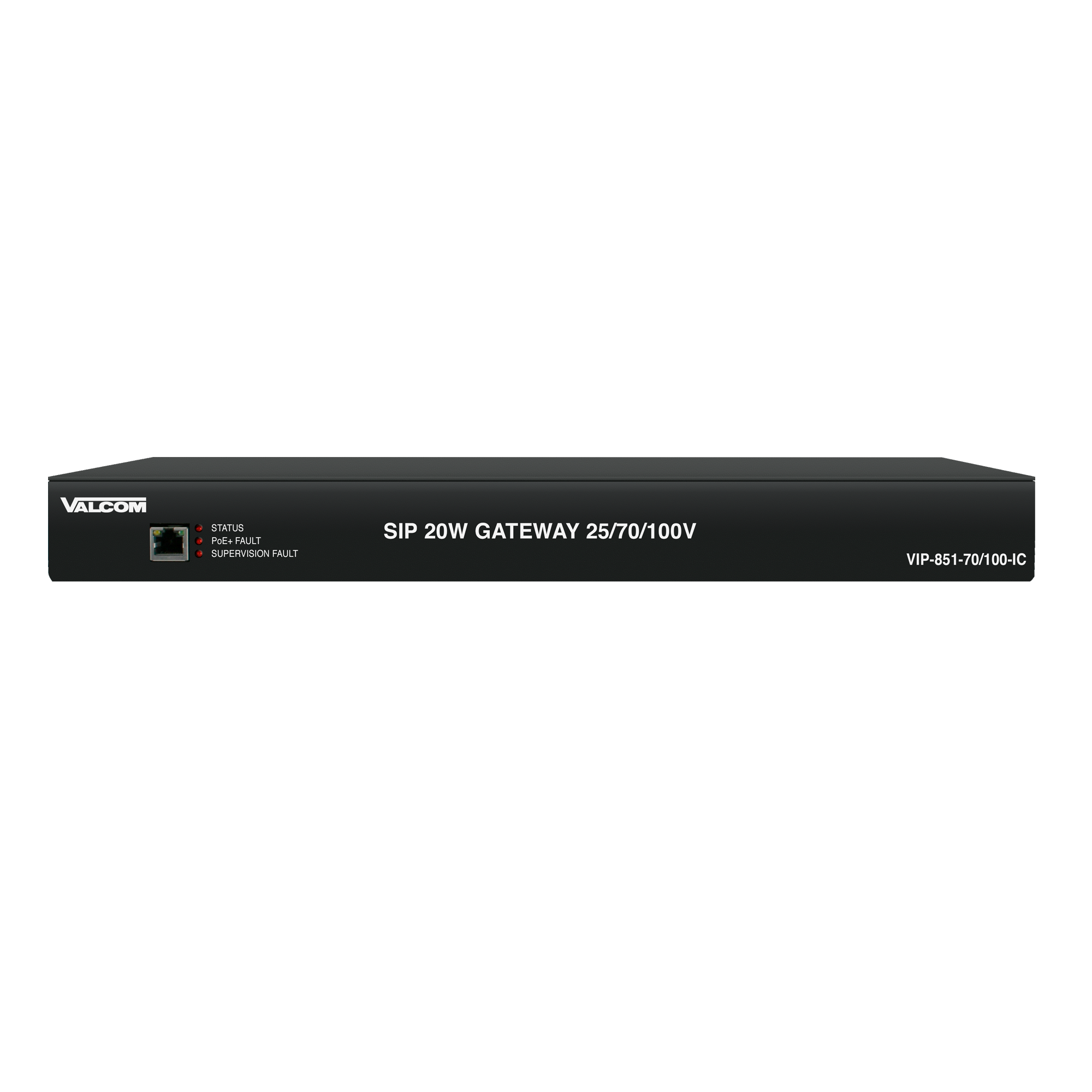 Valcom's VIP-851-70/100-IC, InformaCast® SIP 20-Watt Gateway 25/70/100 V enables voice access to a single zone of one-way paging over an IP network, allowing page zones to be extended anywhere network connectivity is available. The VIP-851-70/100-IC has output connections for line level and 25 V, 70 V or 100 V speakers.