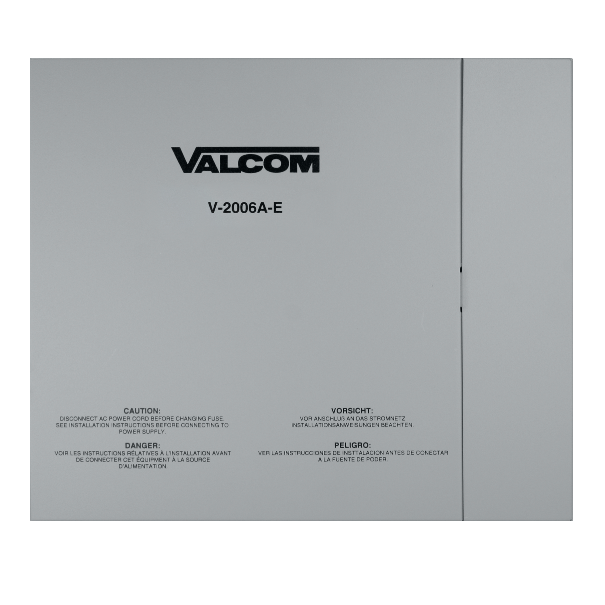 Valcom's V-2006A-E, 6 Zone, One-way Page Control unit that allows the user to page six individual zones of one-way paging and all call. The built-in tone generator enables you to notify with individuals through a variety of tones indicating various events such as break time. The V-2006A-E also has an emergency page override for priority messages so you can alert individuals of emergency or priority notifications.