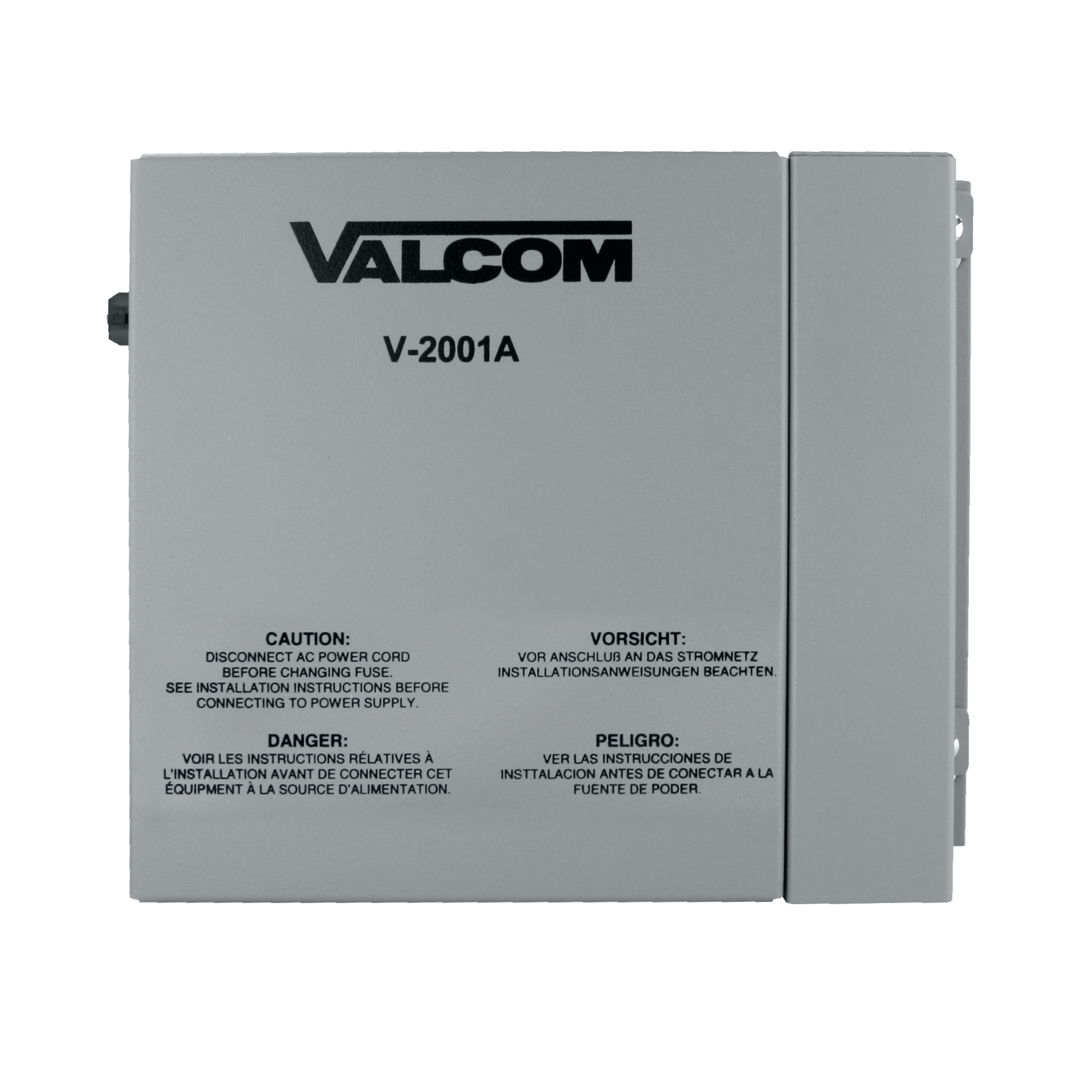 Valcom’s V-2001A-E One Zone, One-Way Enhanced Page Control Unit, European Version is an integrated page control unit equipped with a power supply to provide additional power to Valcom self-amplified speakers and horns. The built-in tone generator (single and warble) allows for night rings and break tones after normal business hours. The V-2001A-E enables you to do emergency page overrides for priority announcements.