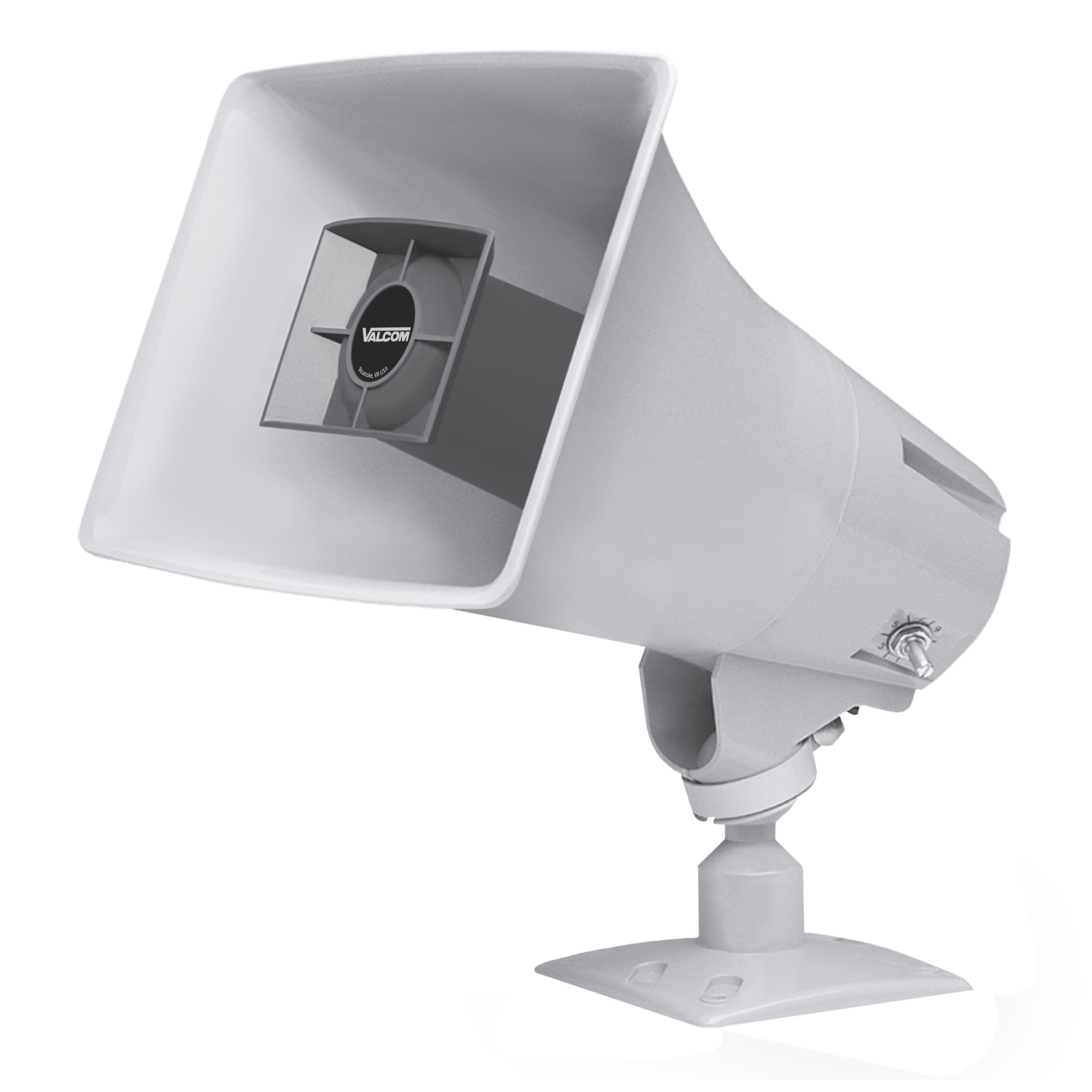 The V-1036C-GY is a 15-Watt High-Efficiency One-Way Horn that generates high-quality voice paging, emergency alerts, and loud ringing for large indoor and outdoor areas for industrial plants, warehouses, schools, parking lots, stadiums and parks. The V-1036C-GY includes a Omni-Lock™ mount for quick and easy installation on multiple surfaces including beams, walls, electrical boxes and other surface areas.