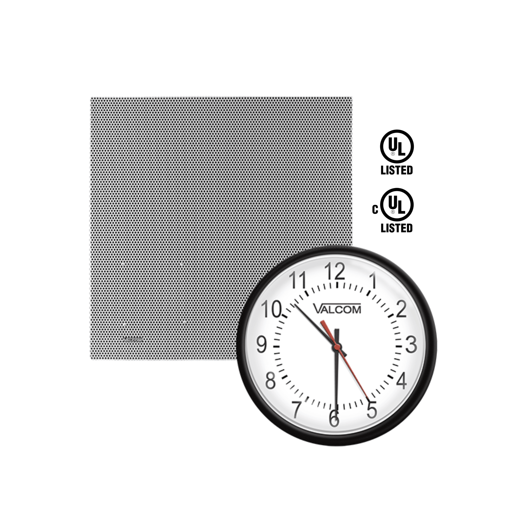 The VE4122-A12 IP Lay-In Ceiling Speaker and Analog Clock Kit includes a 12in Analog Clock and a 2ft x 2ft Lay-in Ceiling Speaker. This provides synchronized time, talkback intercom and loudspeaker paging from one IP network connection. The 12in analog clock can be programmed to sync with any NTP (Network Time Protocol) server. The clock enclosure is constructed of steel with a durable black powder coated finish. The color of the enclosure can easily be changed to match any decor. The lay-In speaker grille is constructed of steel with a white baked on acrylic enamel finish. Power is provided to both the clock and speaker via a Power over Ethernet (PoE) switch meeting the 802.3af specification.