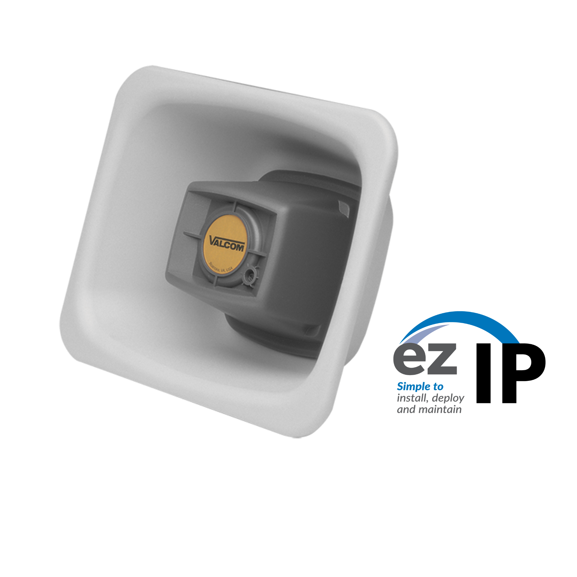 • A high efficiency horn and a Network Interface for standalone capability when used with a SIP telephone system or can be accessed from a Valcom ezIP Page Controller, ezIP Interactive Console or by ezIP Page Group