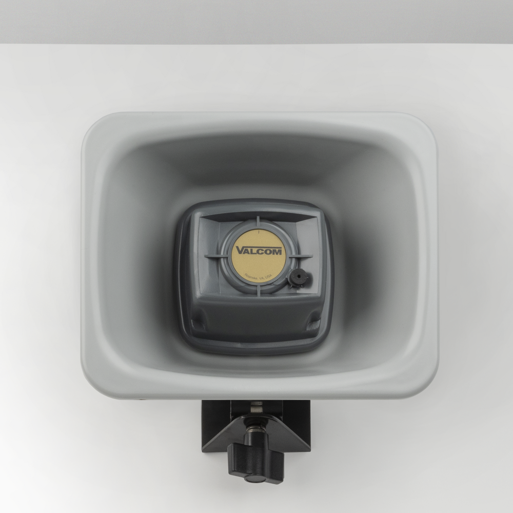 The VIP-480AL-GY-SA Intrado Revolution®, IP One-Way FlexHorn™ with Long Line Extender, is a compact horn designed for areas with low ceilings, and low-to-moderate noise environments. The VIP-480AL-GY-SA is weather-resistant, which provides protection for settings such as car washes, operating rooms and food processing plants and is an ideal solution for gymnasiums, prisons, subway and train stations, parking garages.