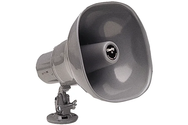 The S-615 Metal Paging Horn is a traditional style metal horn suitable for large and/or noisy areas such as commercial buildings, distribution centers, industrial warehouses, institutions, and recreational facilities. A five position switch provides adjustment to audio level outputs and a built-in transformer allows connections to 25 or 70 volt speaker lines. This paging horn may be used for all indoor and outdoor voice paging applications.
