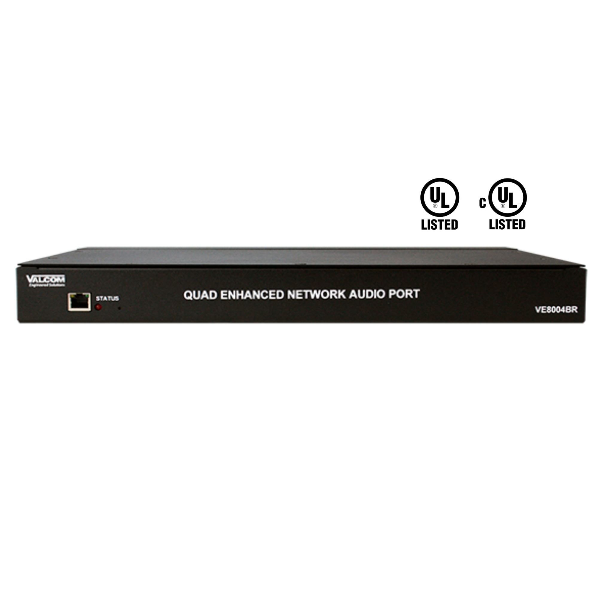 The VE8004BR Quad Network Page Zone Extender enables voice access to four zones of one-way paging over an IP based LAN/WAN. This allows page zone extension anywhere on the network. Multiple VE8004BR Quad Network Page Zone Extenders can be used on the same network to create very large and distributed public address systems. Example applications include multiple floors in a single building, multiple buildings in a campus environment, city wide paging of all fire & rescue buildings, interstate paging between bank branches.