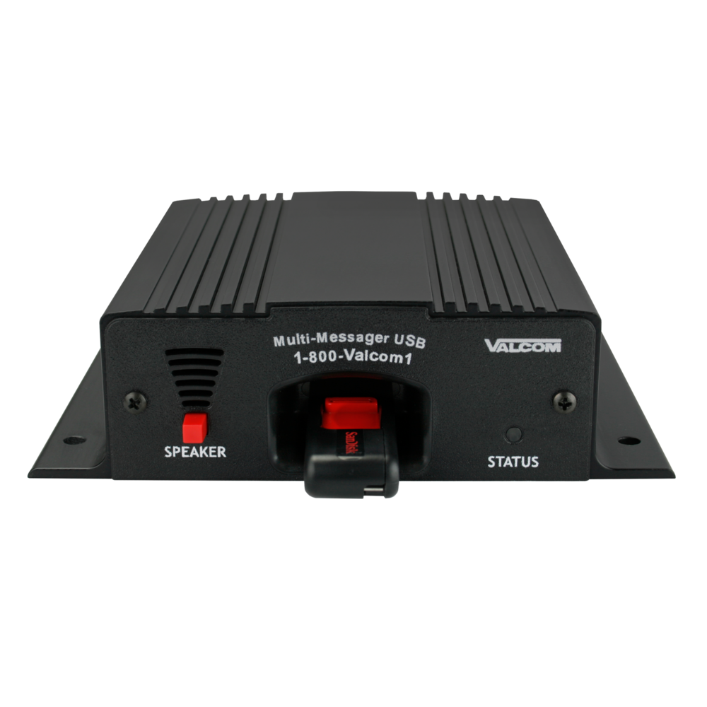 Valcom’s V-9989 USB Digital Multi-Messager Device repeater stores up to 99 different messages in an MP3 format on an industry standard USB flash drive. The messages can be assigned as continuous play, timed play with a built-in timer circuit, or triggered on the eight inputs that unit provides.