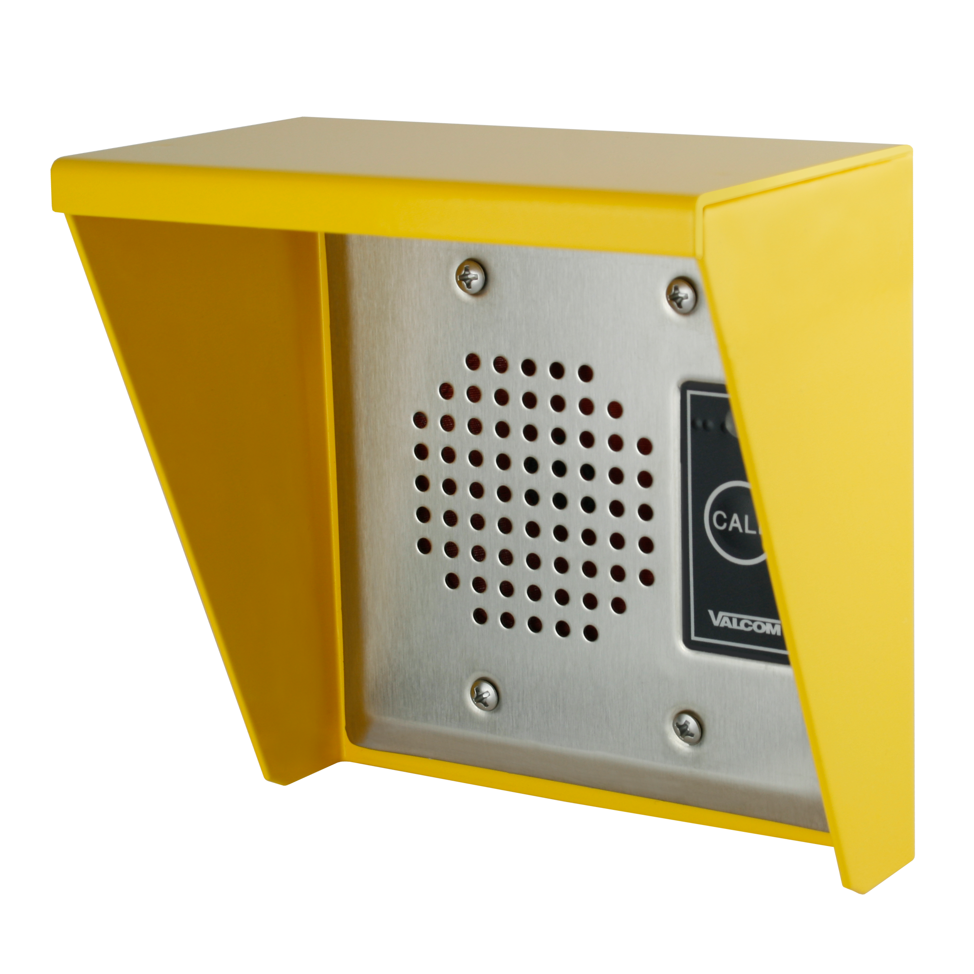 The V-9910 Weather Guard provides protection from precipitation and foreign objects which may compromise the operation of a doorplate speaker. The enclosure is made of steel with either a durable black or yellow powder-coated finish. (Not for V-1074 Surface Mount Intercom Doorplate.)